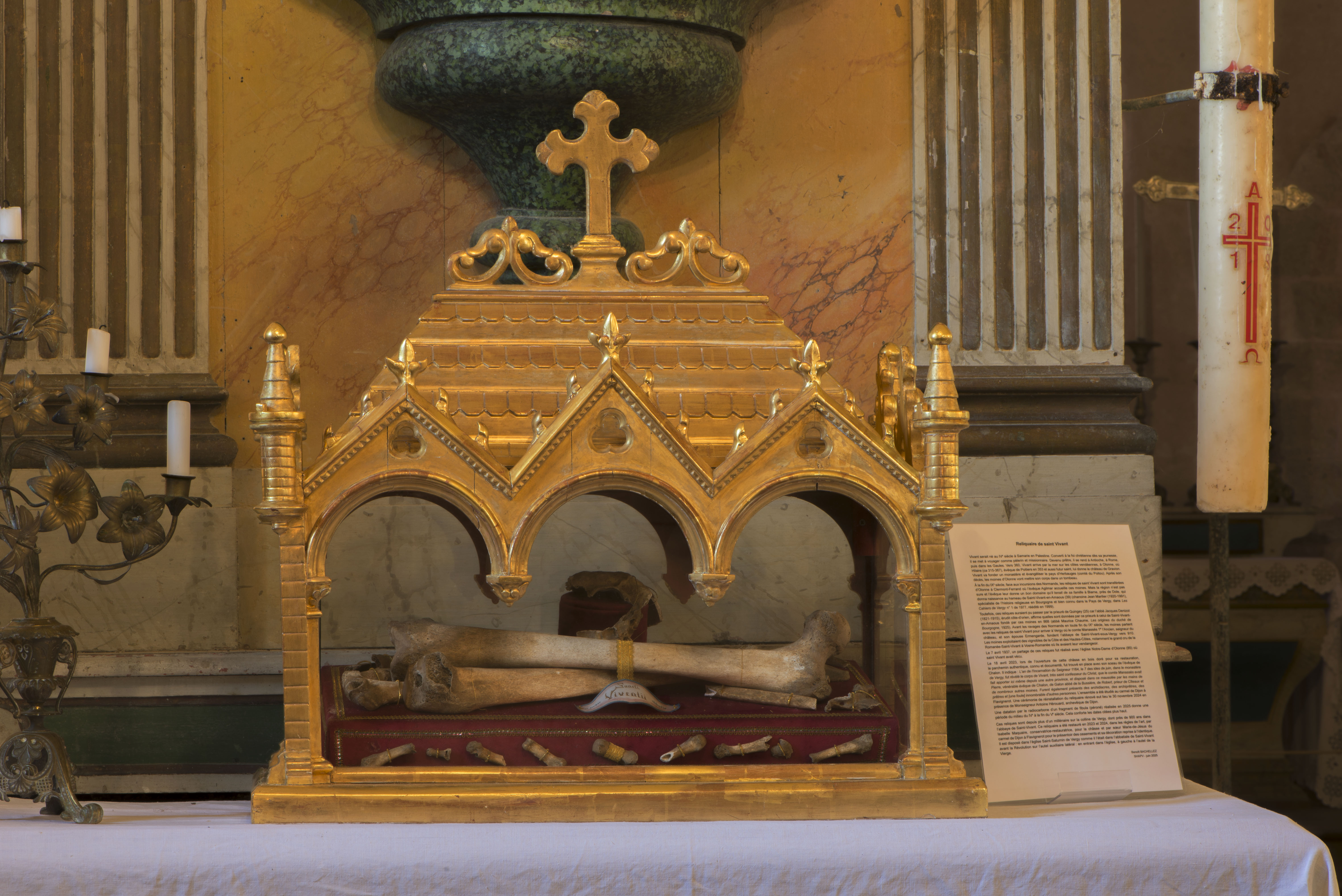Из любопытного - останки святого хранятся в церкви Saint-Saturnin в деревушке Reulle-Vergy, на севере холма. Если честно, я был преисполнен скептицизма, но мне предоставили отчёт об экспертизе - останки принадлежали человеку, который жил в IV веке. Почему реликвии сохранились нетронутыми? Вспомните про Неуловимого Джо, который не был особо востребован, поэтому его и не могли поймать; к тому же места здесь глухие, вот косточки никто и не беспокоил, так они там и лежат. В XI веке Вержи был так могущественен, что в его церкви были останки самого Сен-Дени - первого святого Франции, вот те пропали бесследно. Да, кстати, знаменитый Clos Vougeot тоже изначально принадлежал Аббатству Сен-Виван.
