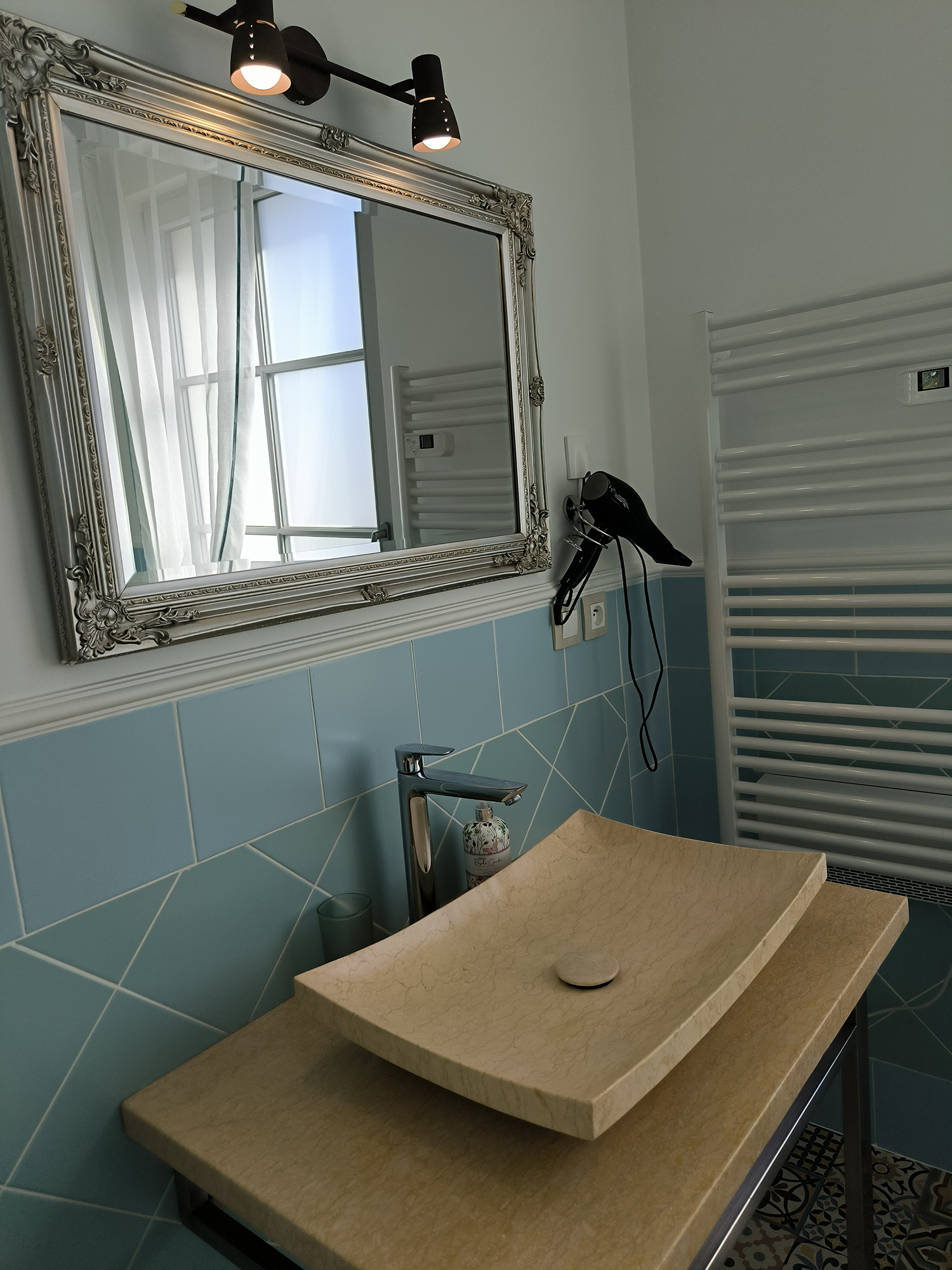 Интерьер номера «Лазурная мечта» выполнен в лазурных тонах. Номер оснащен всем для комфортного пребывания гостей.